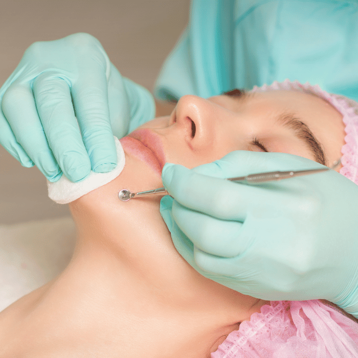 Your your physician or staff member will perform extractions using a special metal instrument that presses down firmly on the targeted area of the skin to gently unclog the plug and remove any oil, bacteria or debris from the lesion. For certain types of blemishes, a sterile needle may be used to break the skin before removing any debris or buildup from the area. Extractions may be performed with steaming techniques, which help to open the pores of the skin and can lead to more aesthetically-pleasing results. Treatment may be covered by your insurance. Copays and deductibles apply.